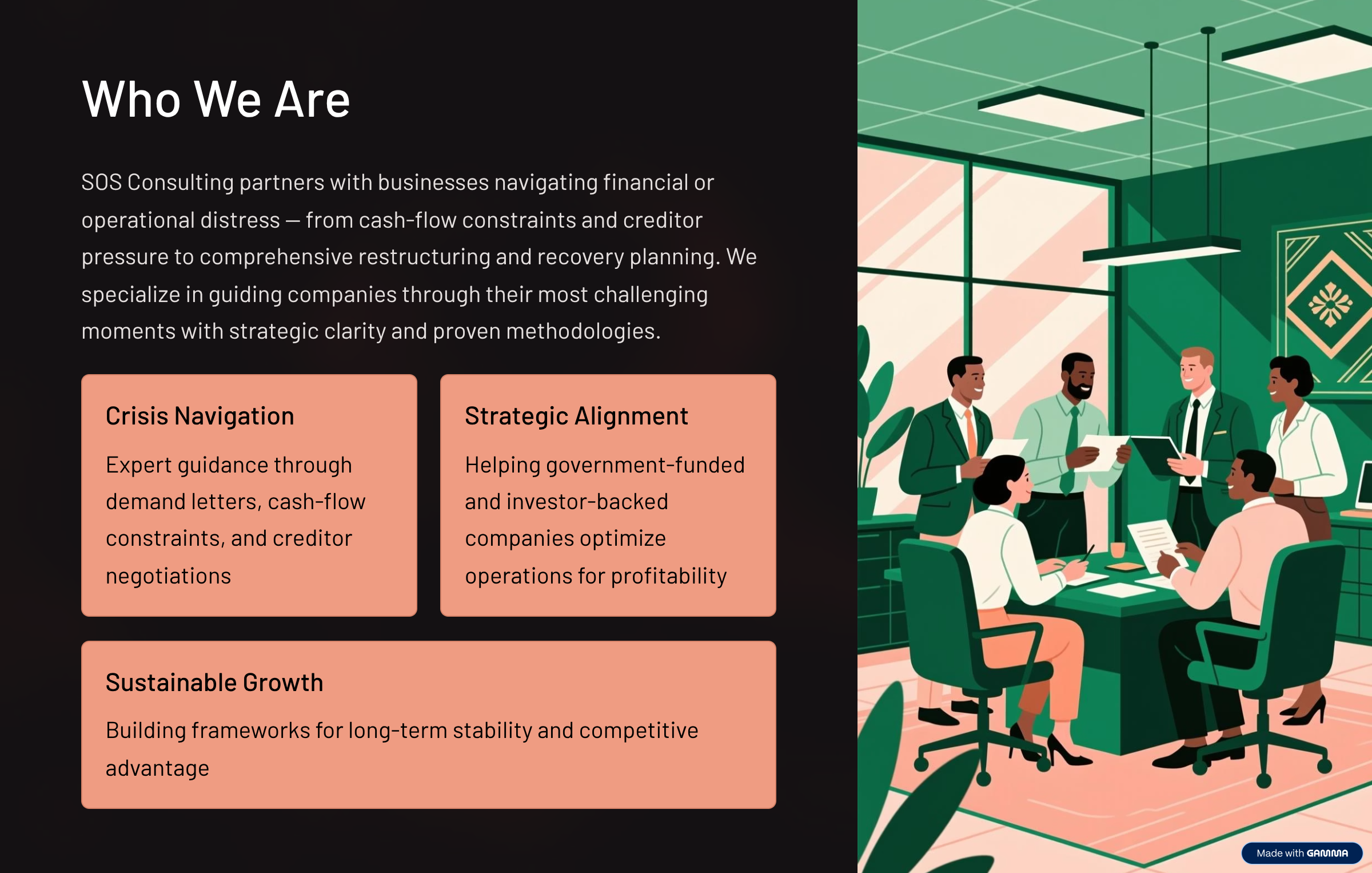Partner with SOS Consulting to rebuild your business with expert guidance and proven strategies.