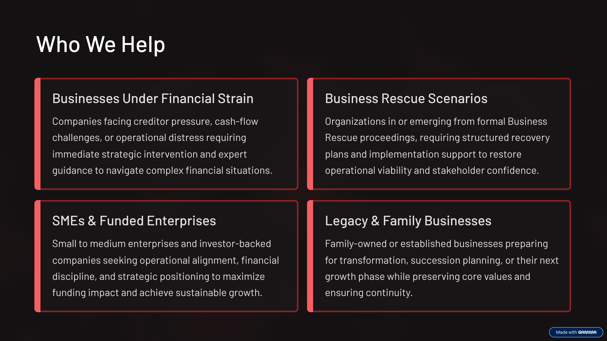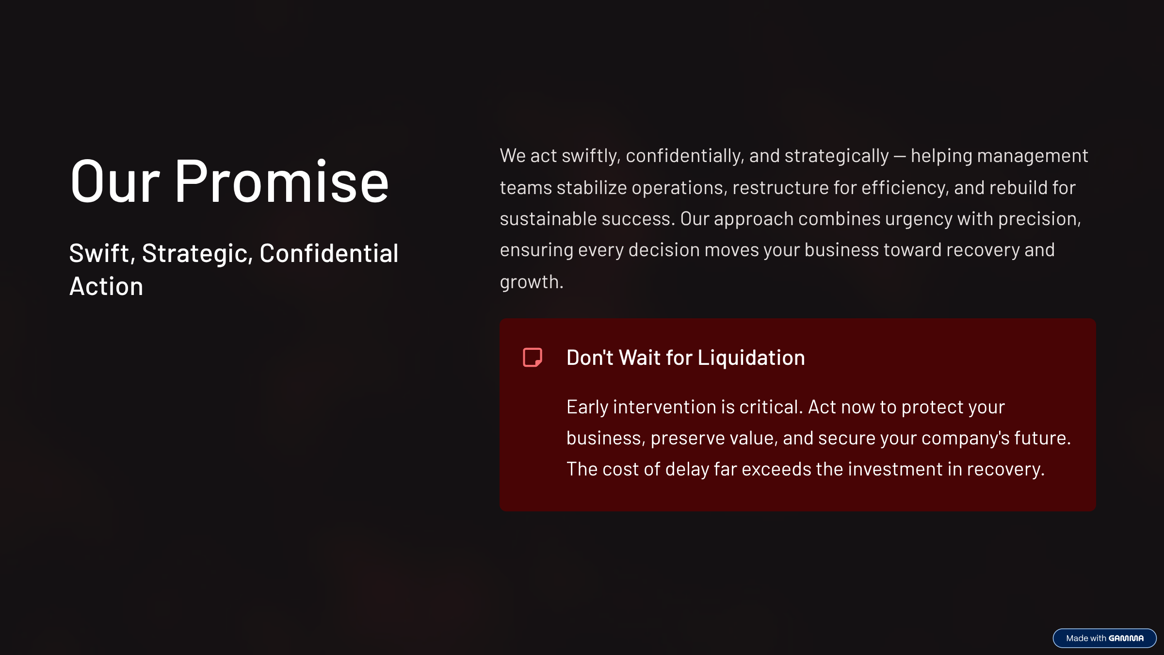 Schedule your consultation seamlessly and get expert guidance on revitalizing your business with strategic restructuring and financial discipline.